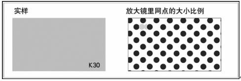 即在對邊的兩顆黑網(wǎng)點(diǎn)之間的空隙內(nèi),能放置三顆同等大小的黑網(wǎng)點(diǎn),就是1成的網(wǎng)點(diǎn);