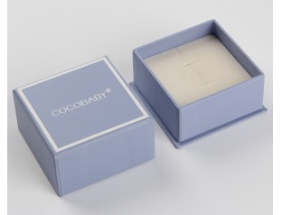 此款首飾盒包裝采用157g銅版紙裱1000g灰板,單色印刷,過(guò)啞膠,內(nèi)盒置入雙層海綿內(nèi)托。首飾天地蓋盒設(shè)計(jì)采用了淺藏藍(lán)色作為整體色,搭配白色的logo,給人 優(yōu)雅又活潑 的視覺(jué)感。首飾紙盒置入成型的米白色海綿內(nèi)托,與產(chǎn)品完全吻合,起到固定和美華的作用。